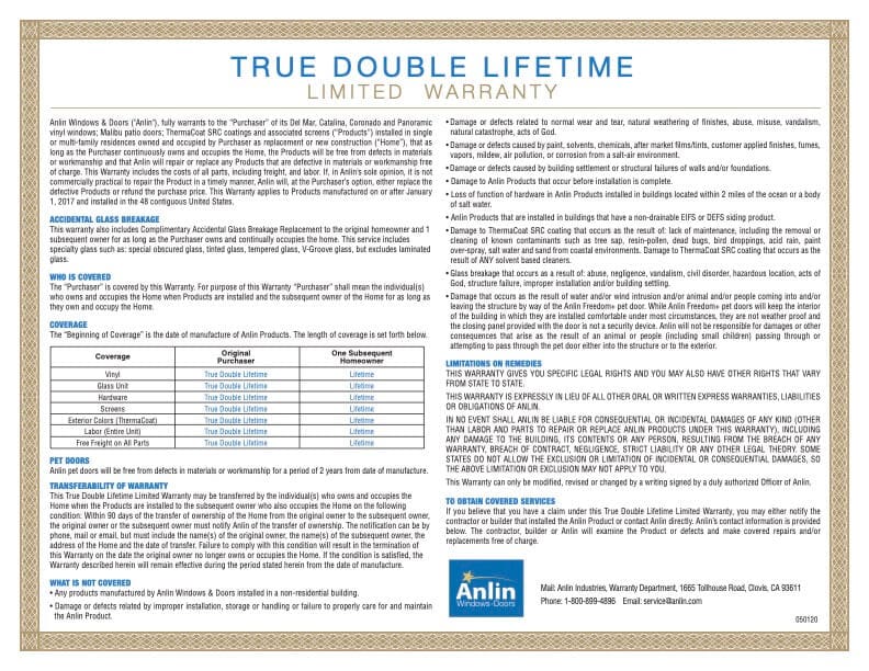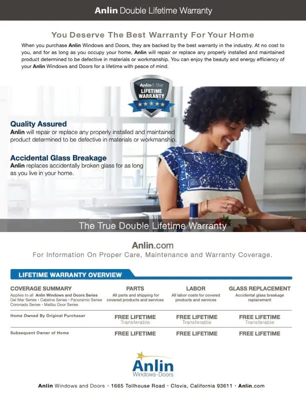 When you purchase Anlin Windows & Doors you are also getting products backed by the best warranty in the industry.