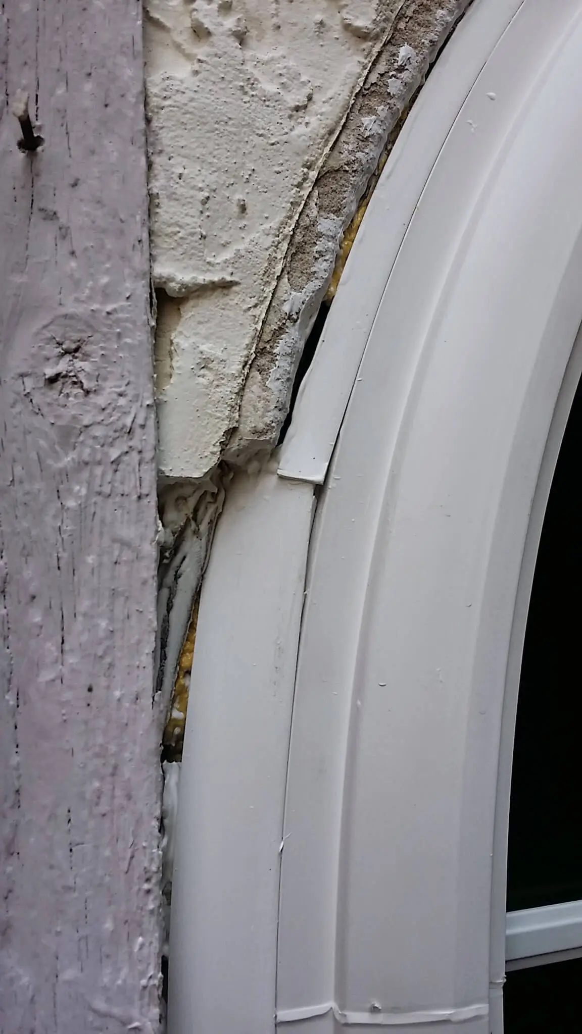 Window sizes will always be listed as Width x Height, and that’s an important detail so you’ll start with measuring the width in at least three places; top, mid-way, and bottom. If it’s a larger window, you’ll want to add some extra points of measurement just to be safe. At this point, you’ll take the smallest measurement and subtract whatever margin you’d like to work with. This varies from company to company, we like to subtract as little as we can so we have a fit that is nice and snug but still allows for the installation. Yes, it’s more difficult and it takes more time but you get a better installation. Some companies will seize upon this opportunity as a good place to cut corners and will order the windows an inch (or even two!) too small. It makes for a quicker, easier installation but you end up with a big gap that needs to be filled with caulk or trim pieces (images below).